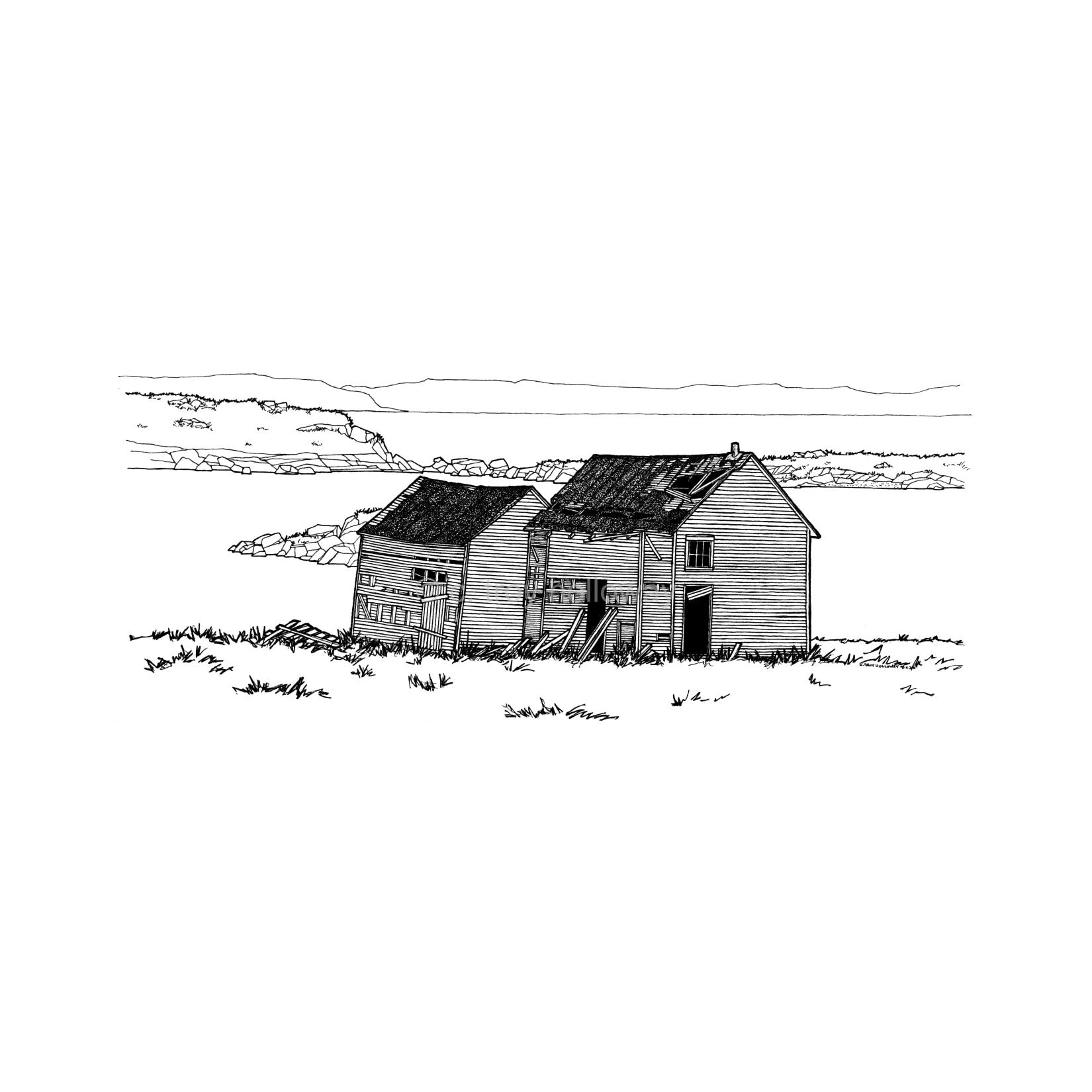 Two weather-beaten saltbox houses overlooking the ocean at Red Cliff, Bonavista Bay, Newfoundland. Despite their rough appearance, it isn't hard to imagine these homes in their prime, providing shelter to the families who built and lived in them so many years ago.